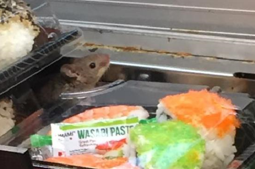 Pemilik kedai itu, Florence Zheng pada minggu lepas berkata, pekerjanya terkedu apabila melihat seekor tikus mengeluarkan kepalanya di celahan bungkusan sushi.