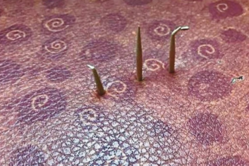Gambar tiga pencungkil gigi yang terpacak dari tempat duduk berkenaan dimuat naik seorang pengguna Facebook yang menyedarinya ketika hendak duduk.