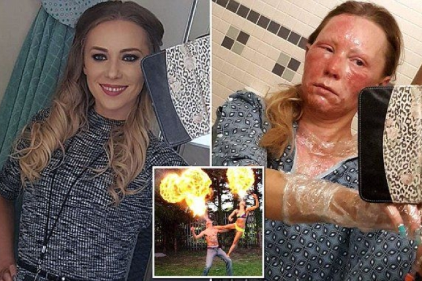 Wanita berusia 38 tahun itu menunjukkan kemahirannya menghembus api kepada rakan-rakannya di sebuah taman selepas pertandingan itu pada Julai lalu.