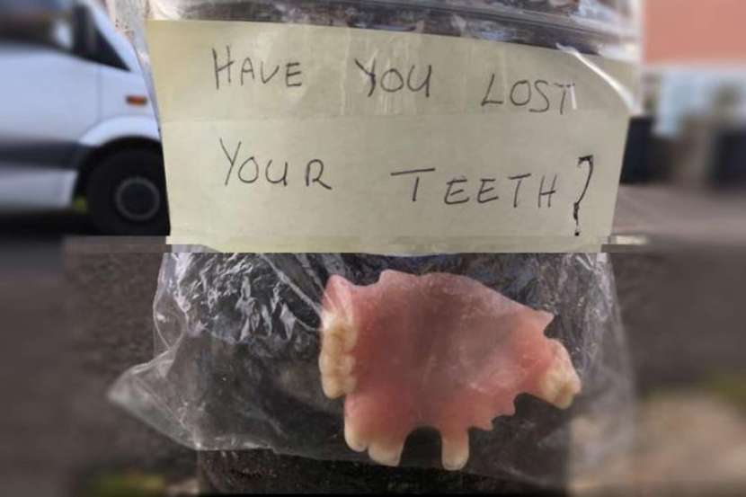 SEORANG wanita di Lincolnshire terkejut melihat satu set gigi palsu pada pokok bersama nota bertulis, ‘ada sesiapa hilang gigi?’.