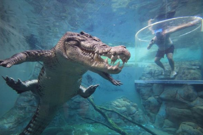 Makanan buaya akan diberikan penyelia berdekatan dengan kandang itu bagi membolehkan pengunjung melihat pergerakan haiwan tersebut menerusi pemandangan 360 darjah di dalam air. - Mail Online