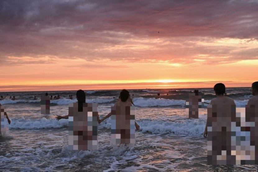 Tanpa menghiraukan kesejukan pada waktu pagi, kesemua mereka terbabit dalam acara tahunan North East Skinny Dip.