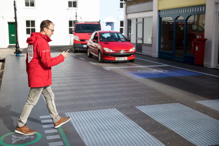 Satu prototaip bagi kaedah lintasan jalan kaki yang baharu dipertunjukkan dekat Mitcham, selatan London.