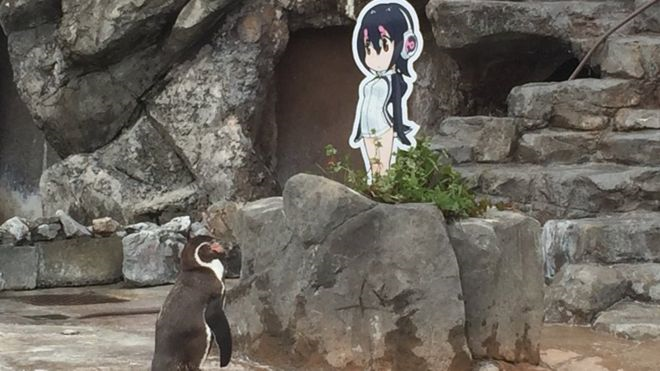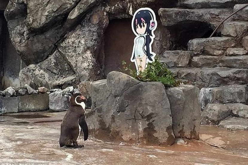 Potongan kadbod seorang gadis dari siri anime Kemono Girls pada mulanya diletakkan di kandang Grape-kun semasa kempen iklan pada April dan tanpa disangka-sangka penguin ini telah jatuh cinta dengannya.
