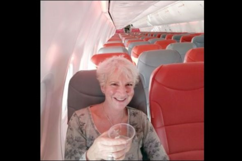 Semasa di kaunter daftar masuk, wanita berusia 57 tahun dari Dunlop, Ayrshire itu diberitahu hanya tiga orang termasuk dirinya membuat tempahan bagi penerbangan bermusim itu.