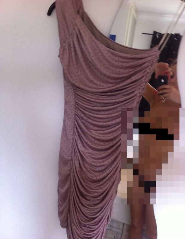 Sekeping gambar menunjukkan sehelai baju gaun berwarna merah jambu tetapi imej tersebut turut menyaksikan seorang lelaki dalam keadaan berbogel.