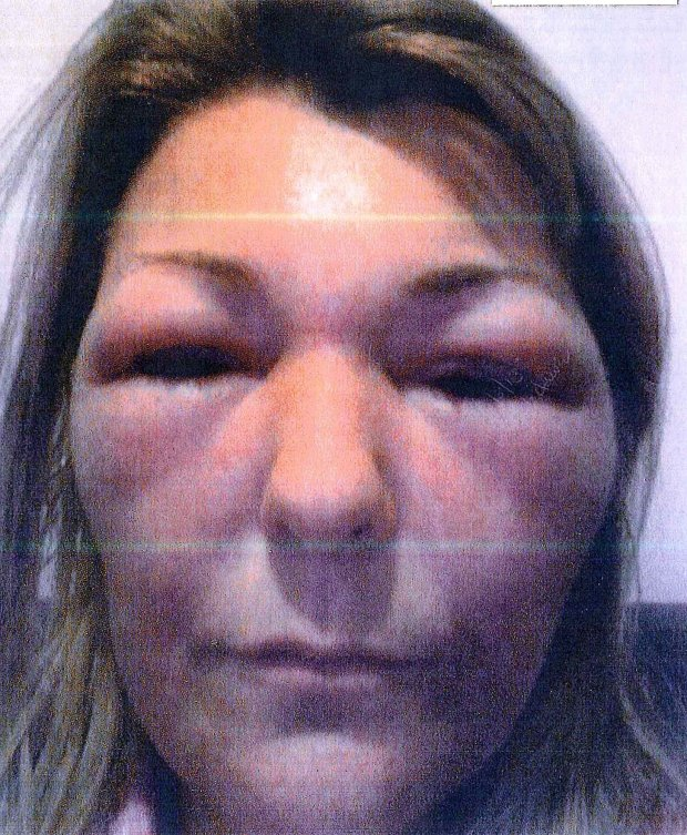 Gambar-gambar yang dikemukakan kepada mahkamah menunjukkan mangsa dengan wajah 'kemerahan' dan membengkak.