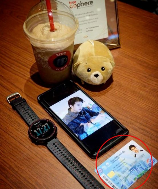 Salah satu gambar menunjukkan kad kebajikan yang dikeluarkan oleh kerajaan Thai untuknya diletakkan di bawah seutas jam tangan berjenama bersama secawan kopi mahal.