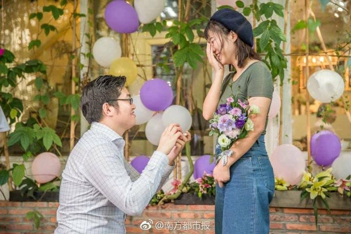 Gadis yang dikenali sebagai Lee, ternyata tersentuh apabila tiba di lokasi itu dan melihat Cheng melutut sambil memegang cincin perkahwinan.