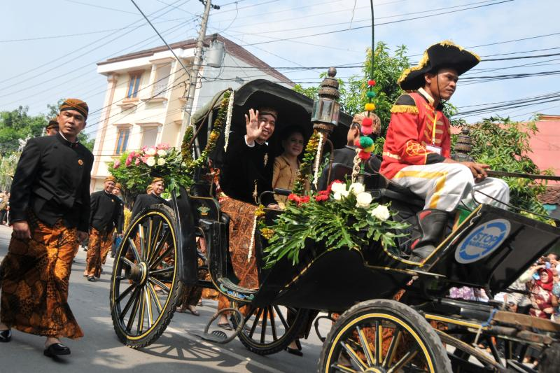 Seramai 8,000 tetamu termasuk duta asing hadir ke majlis perkahwinan itu yang diadakan mengikut tradisi Jawa. - Reuters
