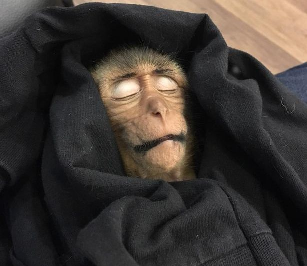 Anak monyet baka 'macaque' itu menerima padah selepas mencuri kopi seorang pelancong dan kemudiannya pengsan kerana 'overdos' kafein.