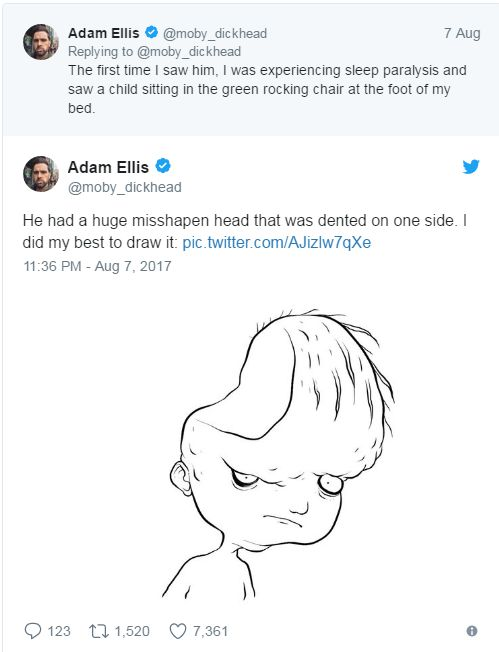 Adam Ellis, dari New York, mula menceritakan tentang kejadian menyeramkan beberapa bulan lalu dengan berkongsi tentang 'budak iblis' berkepala penyek yang sering hadir dalam mimpinya yang menyeramkan.