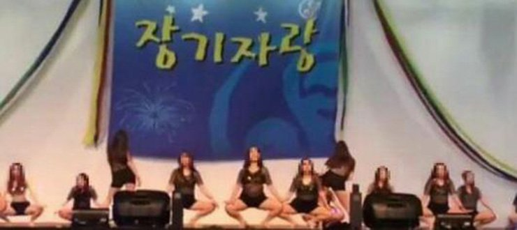 Mereka memakai seluar pendek dan baju seksi semasa membuat persembahan ketika acara sukan tahunan pada Oktober.