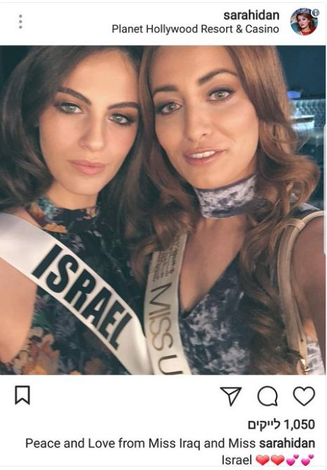 Pada Selasa, Ratu Cantik Israel Adar Gandelsman dan Ratu Cantik Iraq Sarah Idan telah mengambil gambar selfie, tetapi ia tidak diterima baik oleh sebahagian pengguna media sosial.