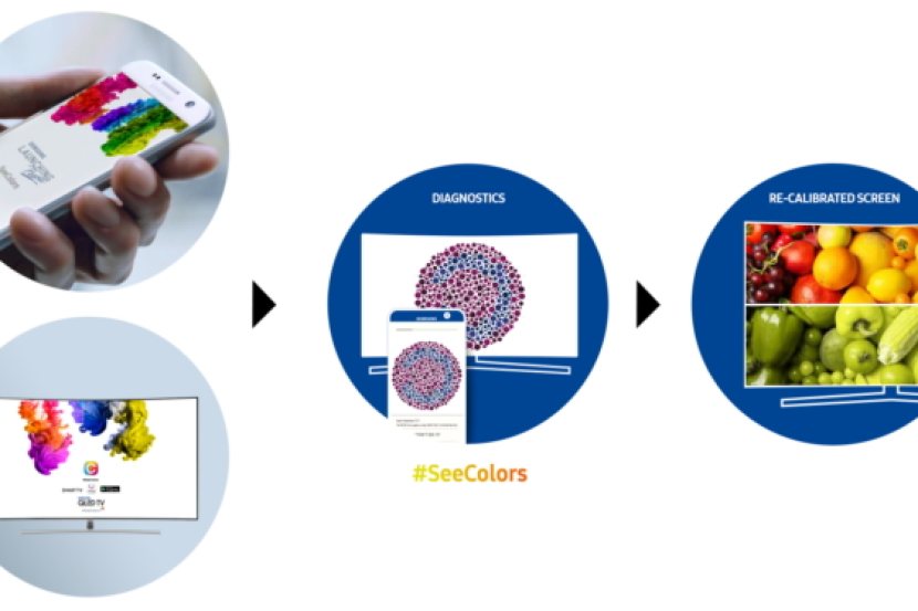 Aplikasi SeeColors, dibangunkan rakan kongsi Samsung iaitu syarikat Colorlite yang berpangkalan di Hungary, mengendali ujian warna ke atas pengguna dengan ketepatan kira-kira 90 peratus serta menggunakan skrin khas untuk memberikan pengalaman menonton yang lebih terang dan jelas.