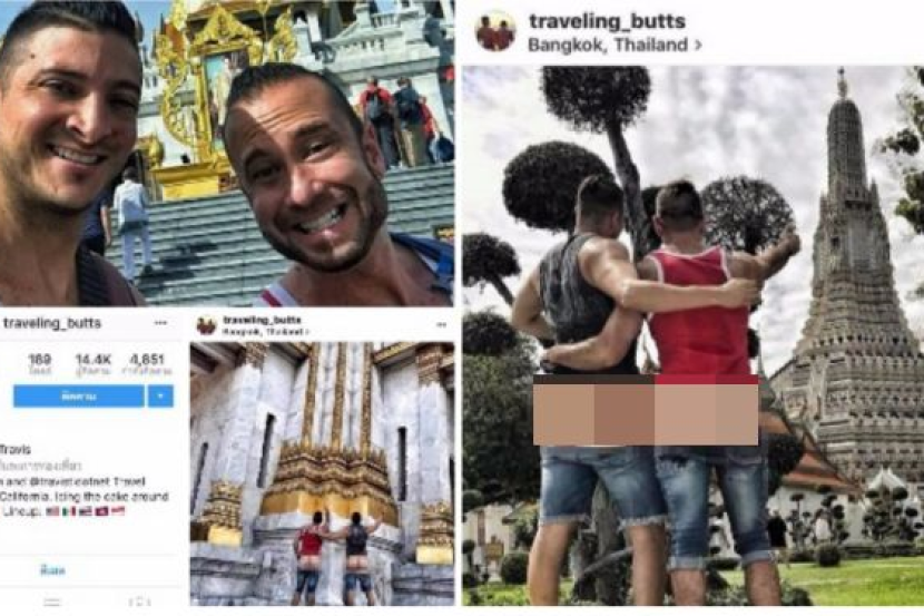 Mereka ditahan selepas menyiarkan gambar punggung masing-masing dengan latar belakang kuil Wat Arun di akaun Instagram tersebut yang telah dipadam. Akaun @travel_butts sebelum ini memaparkan gambar-gambar dua lelaki terbabit menunjukkan punggung mereka di tempat-tempat pelancongan dunia.