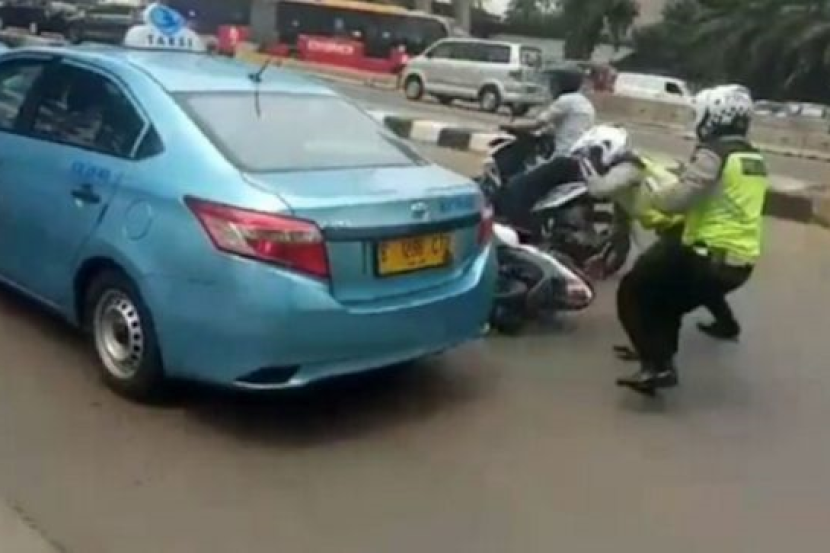 Posting tersebut turut menunjukkan video motosikal seorang pegawai polis dilanggar oleh seorang pemandu teksi Blue Bird yang cuba melarikan diri dari pos pemeriksaan lalu lintas.