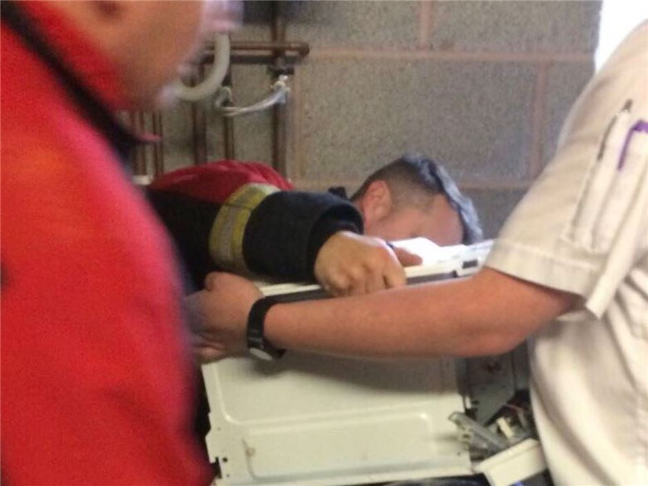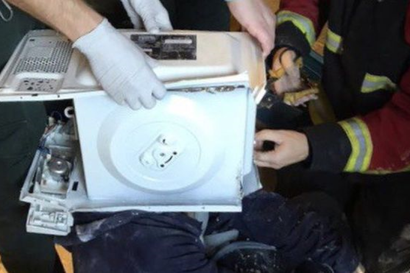 Kru dari pasukan penyelamat teknikal membantu mengeluarkan ketuhar gelombang mikro itu, katanya.