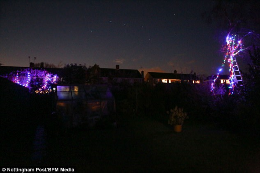 Chris berkata: 'Terdapat peranti cahaya di hadapan taman mereka yang mengeluarkan cahaya laser.