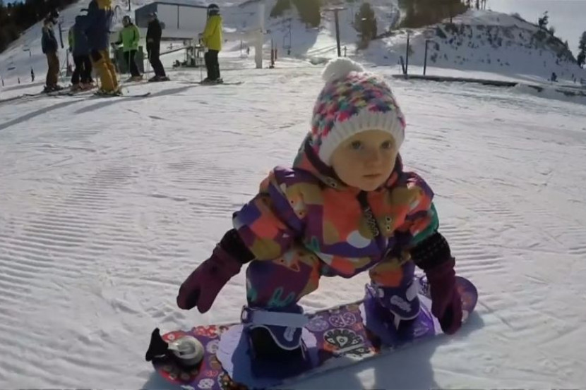 SEORANG bayi yang baharu sahaja berusia setahun mencuri perhatian kerana aksi comelnya meluncur di atas papan salji.