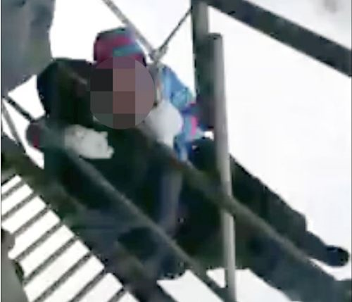 Rakaman video menunjukkan pasangan tersebut terhempas di atas ketulan ais tebal selepas tali yang digunakan mereka untuk aksi ekstrem itu terlalu panjang.