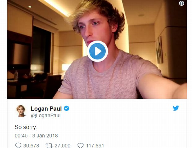 Bintang YouTube itu, Logan Paul, memuat naik rakaman video berdurasi 15 minit yang memaparkan mayat seorang lelaki yang membunuh diri di sebuah hutan terkenal di Jepun ke saluran YouTube yang diikuti oleh 15 juta pelanggan.