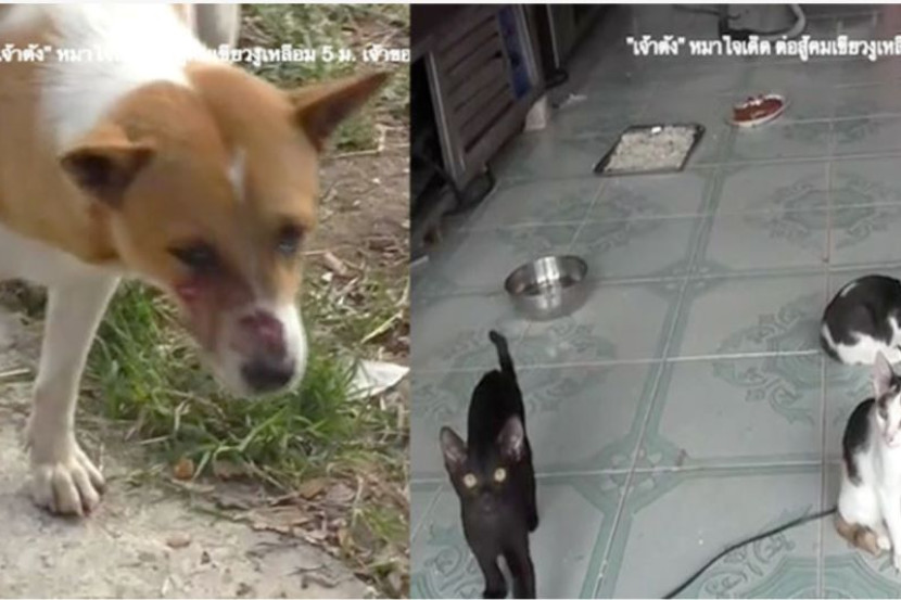 SEEKOR anjing bernama Tang menjadi tajuk berita dalam media Thailand selepas menunjukkan keberaniannya melawan seekor ular sawa untuk menyelamatkan sekumpulan kucing di kediamannya di wilayah luar bandar Ang Thong, menurut pemiliknya. Pemilik Tang, yang hanya dikenali sebagai Panisara, 38, berkata, Tang, 3, menyalak dan gelisah di belakang rumahnya pagi ini menyebabkan dia terpaksa keluar untuk melihat apa yang berlaku. Apabila diperhatikan betul-betul, dia melihat Tang sedang menyalak terhadap seekor ular sawa berukuran lima meter yang tersembunyi di sebuah pokok dan Tang mempunyai beberapa kesan luka di mukanya, dipercayai akibat bergelut dengan ular tersebut. Tang mempunyai kesan luka di bahagian muka, dipercayai akibat bergelut dengan ular sawa. -fotoSanook Panisara mengesyaki bahawa ular itu datang ke rumahnya untuk makan kucing-kucing peliharaannya, kerana ini bukan pertama kali ular dilihat di rumahnya. Sebelum ini dia dan teman lelakinya terpaksa melawan seekor ular untuk melepaskan seekor kucing dari cengkamannya. "Ular itu membelit badan seekor kucing, jadi saya dan teman lelaki perlu menyelamatkannya. Ini ular kelima yang datang ke rumah kami." Oleh kerana seekor kucing telah hilang, Panisara mengesyaki bahawa ia sudah dimakan ular sawa itu sebelum Tang melihatnya dan seterusnya melawan ular tersebut. Para sukarelawan penyelamat dipanggil untuk menangkap ular sawa itu dan Panisara memutuskan untuk meletakkan kucing-kucing di dalam rumah, lapor Sanook.
