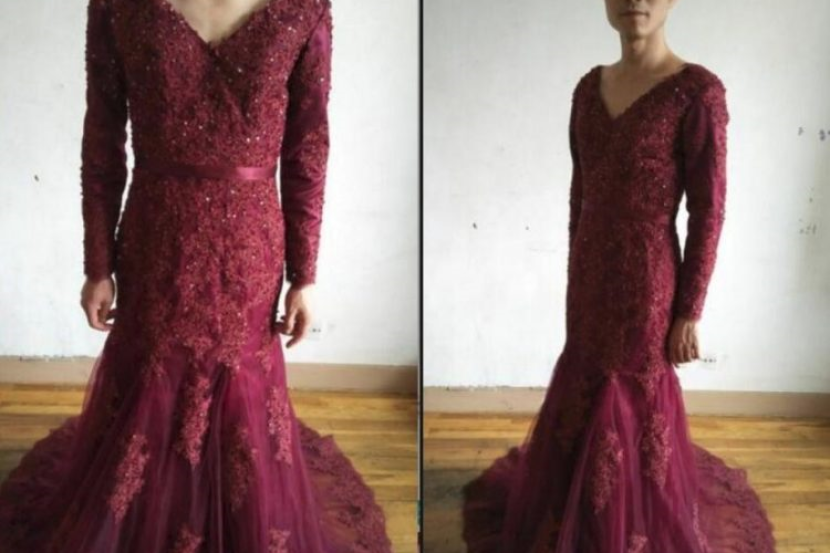 Gambar seorang penjual lelaki Cina menggayakan beberapa gaun elegan tular di Reddit beberapa hari lalu.