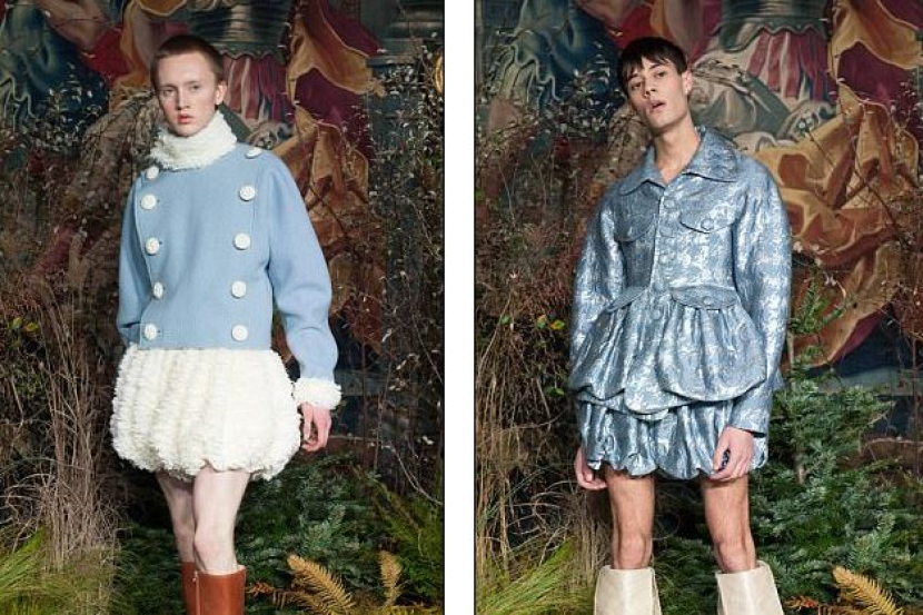 Pereka yang mendapat pendidikan di Kolej Fesyen London itu memilih untuk memakaikan model-model lelakinya dengan gaun, skirt dan suspender sutera. - Mail Online