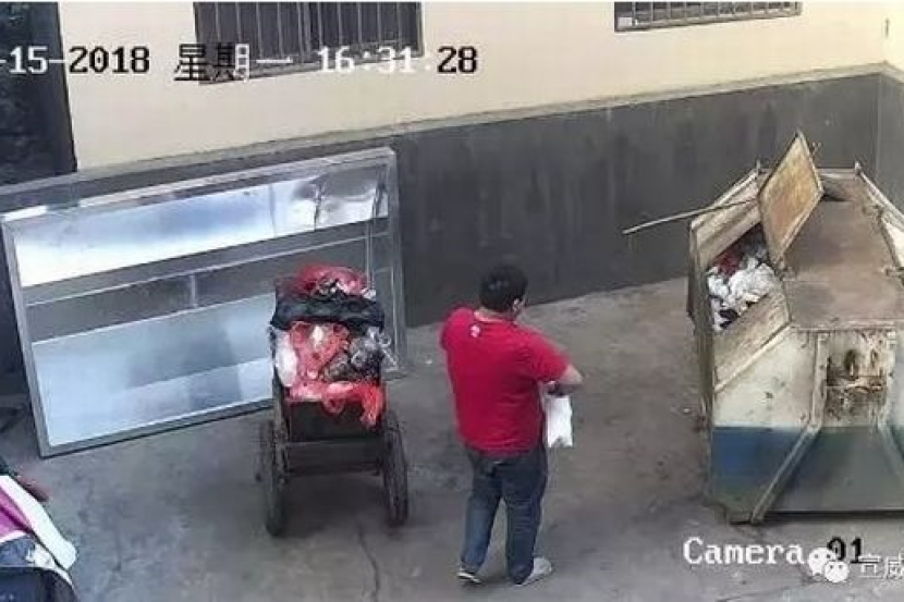 Rakaman CCTV menunjukkan seorang lelaki membuang anaknya di tempat pembuangan sampah. Foto Yuman Daily
