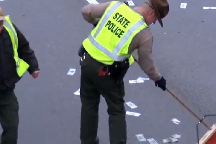 LEBUH raya Amerika Syarikat (AS) dihujani wang kertas apabila sebuah kereta merempuh pembahagi jalan sebelum merempuh kenderaan lain. Kereta itu membawa wang kertas AS$5, AS$10 dan AS$20 kutipan mesin judi video di laluan Illinois, demikian menurut laporan CNN. Bagaimanapun, tidak diketahui jumlah keseluruhan wang yang bertaruran di lebuh raya itu. Pemandu kereta itu dilaporkan memandu terlaju hingga hilang kawalan dan terbabas. Kenderaan ke tiga yang cuba mengelak terlibat dalam nahas itu juga terbabas. Susulan kejadian itu, polis bergegas ke lokasi dan mengutip wang kertas yang memenuhi lebuh raya itu. Laluan itu juga ditutup selama beberapa jam bagi membolehkan pihak berkuasa mengalihkan kenderaan yang terlibat dalam kemalangan itu. Kejadian itu juga mengakibatkan trafik sesak sejauh beberapa kilometer. Laporan Fox News menyebut, salah seorang pemandu kenderaan terlibat dalam kemalangan itu telah dibawa ke hospital bagi merawat kecederaan yang dialaminya.