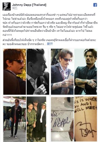 "Mengenai Johnny Depp palsu ini, pada mulanya saya fikir ia lucu, tetapi bila saya baca maklumat daripada orang yang berjumpa dengannya, ia langsung tidak melucukan, seolah-olah dia cuba menipu kita," tulis pentadbir laman Facebook 'Johnny Depp Thailand'.