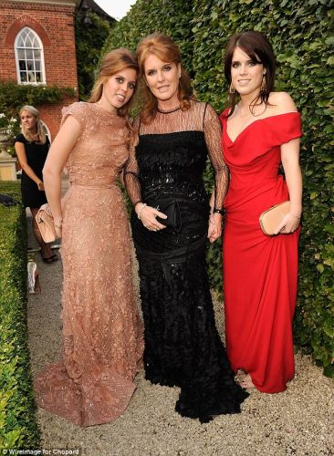 Sarah Ferguson (tengah) bersama Puteri Beatrice (kiri) dan Puteri Eugenie.