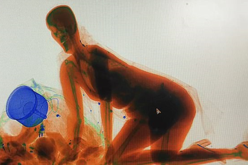 Anggota keselamatan terkejut apabila melihat imej seorang wanita ketika memantau skrin imbasan X-ray.