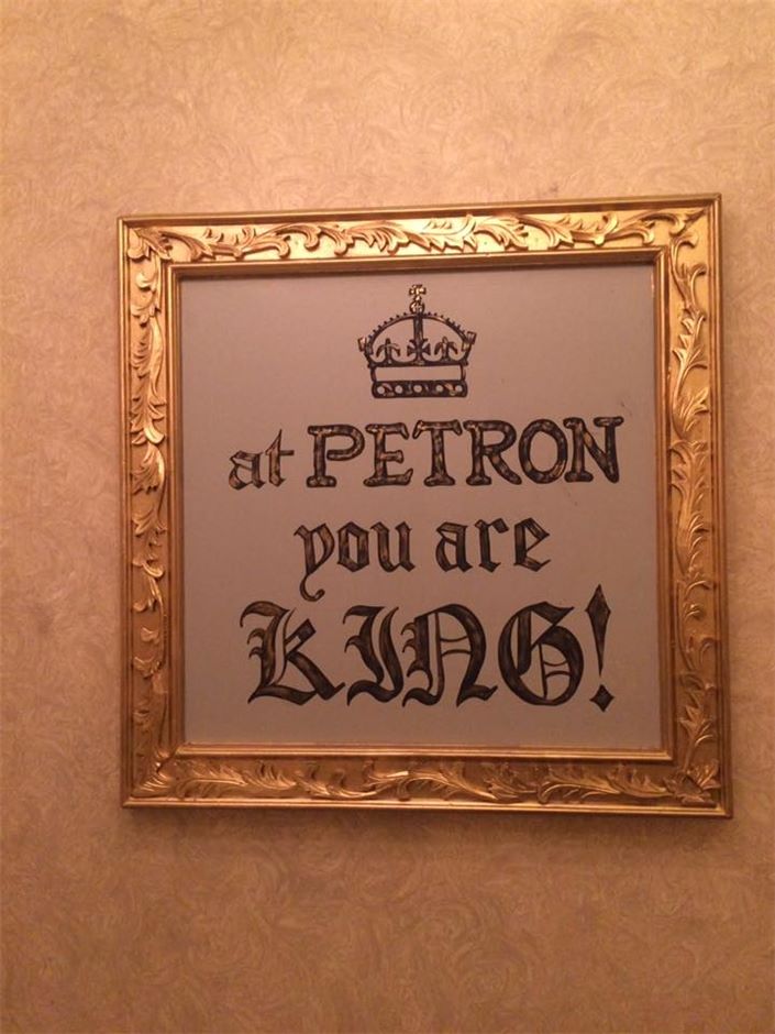 Stesen minyak Petron turut menggantungkan bingkai gambar yang tertulis: "Di Petron, kamu ialah Raja!"