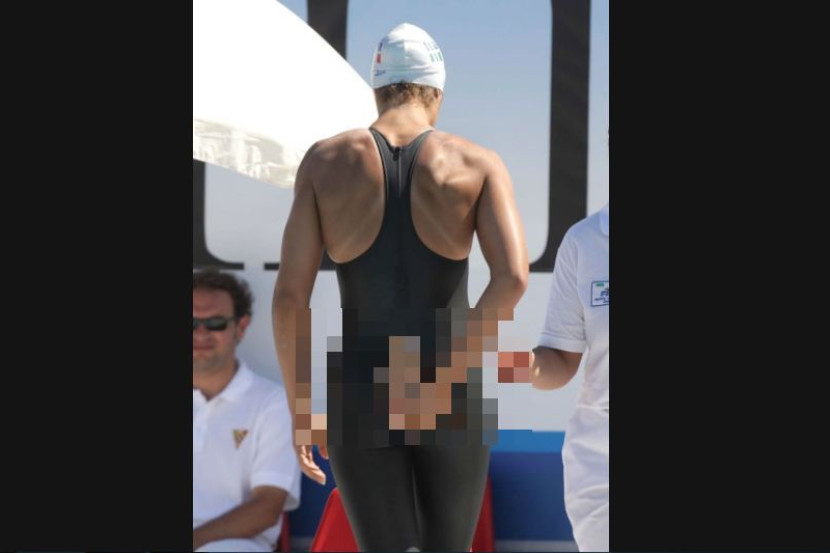 Atlet renang Itali, Flavia Zoccari berdepan dengan insiden memalukan berikutan kostumnya koyak sehingga menampakkan sebahagian punggungnya, pada Sukan Mediterranean, 2009.