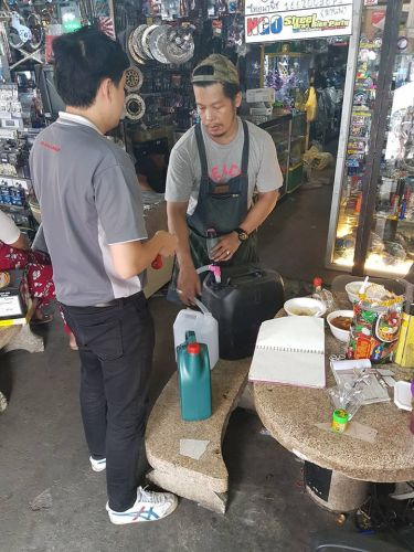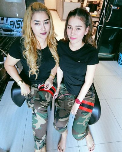 Kedua-dua wanita ini membantu perniagaan Manop, menjual alat-alat ganti kereta dalam acara perlumbaan utama di Thailand.