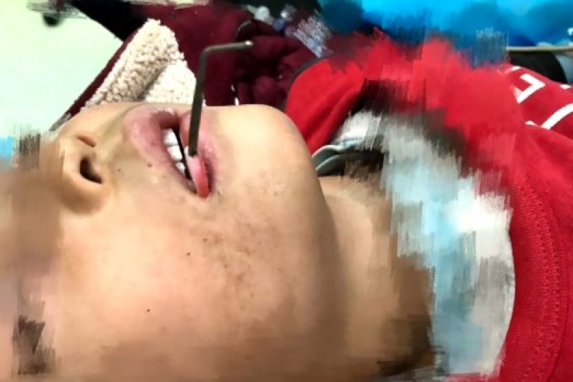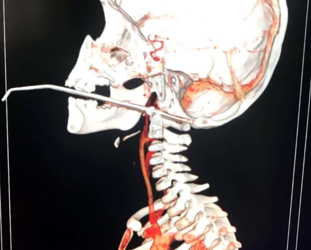 Menurut doktor, nyawa kanak-kanak itu berada dalam bahaya kerana jarum itu menembusi tulang yang menyambung ke tengkoraknya.
