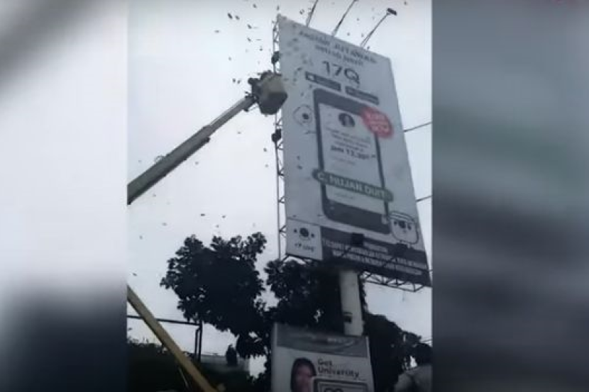"Lebih kurang pukul 12.30 tengahari, ada orang naik kren dekat papan iklan, dia melemparkan wang dari atas. Saya sempat ikut tadi, lumayan dapat Rp20,000 (RM5.69)," kata saksi, Dede, memetik Kompas.