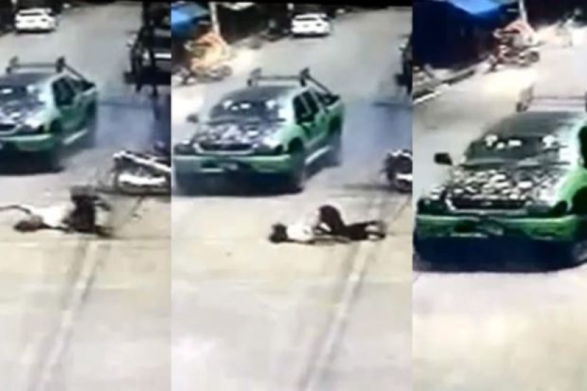 Ketika itu, seorang lagi pekerja kedai tersebut, Abdullah Ma, 22, berlari untuk menarik ke tepi penunggang motosikal terbabit, namun trak itu dilihat mengundur dan maju ke depan untuk menggilis mangsa dengan kelajuan maksimum. - The Nation/Asia News Network