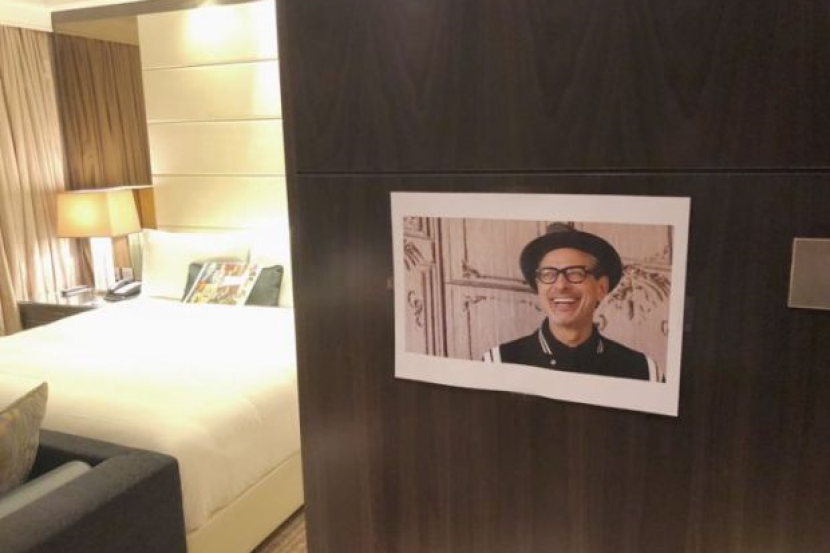 Apabila pasangan itu tiba, mereka mendapati bukan hanya satu tetapi beberapa keping gambar Goldblum diletakkan di dalam bilik dan juga di bilik mandi.