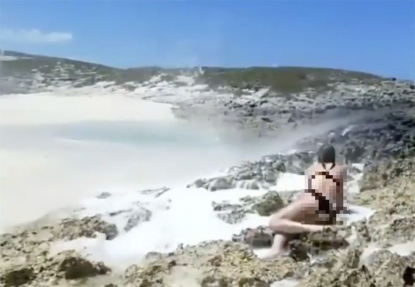 Kelihatan wanita tersebut seakan-akan hilang beberapa ketika dan muncul semula dalam keadaan terdampar di atas batuan tajam.