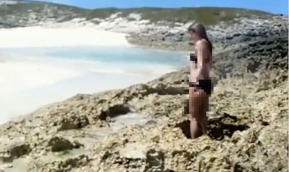 Wanita tersebut bergaya (posing) di pantai Bahamas dengan mengenakan bikini berwarna hitam ketika video itu direkod.