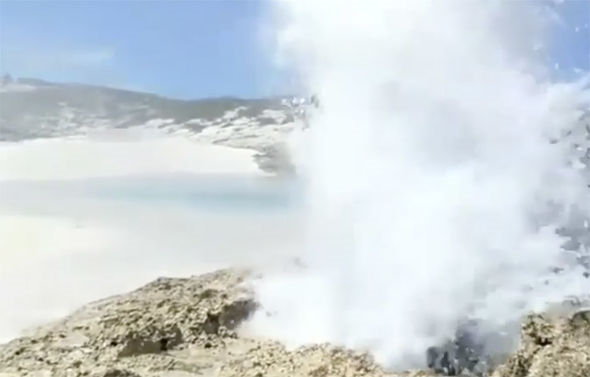 Pada mulanya, dia kelihatan gembira bermain air itu, namun air laut menjadi 'ganas' ketika keluar daripada sebuah lubang.