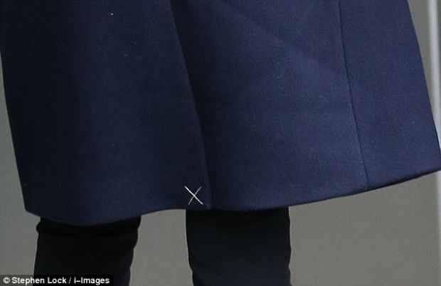 Bagaimanapun Meghan terlepas pandang apabila memakai kot yang masih mempunyai jahitan silang pangkah (X) pada bahagian belakang baju tersebut.