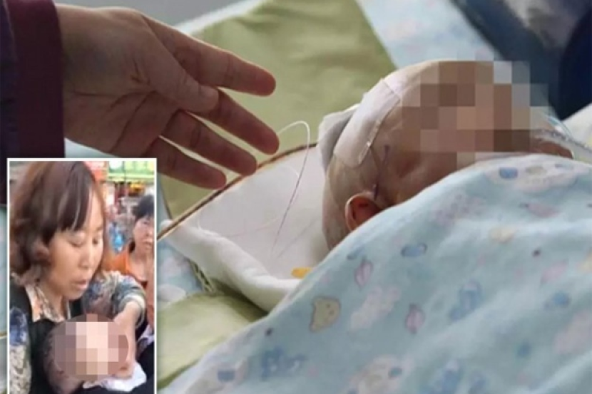 Ujian imbasan CT mendapati bayi itu mengalami pendarahan otak, selain tempurung kepalanya retak, demikian lapor Sina News.