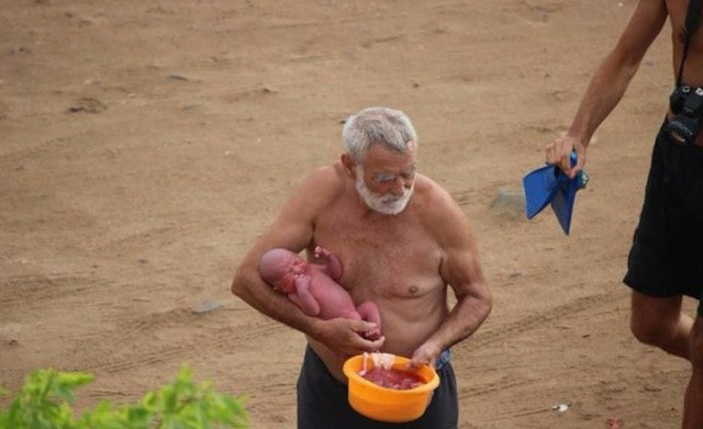 Menurut laporan saksi, wanita itu melahirkan bayinya selepas masuk ke dalam laut hanya memakai bikini.