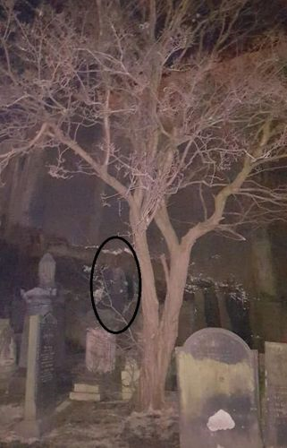 Kelibat menyeramkan itu dilihat sedang terapung di atas tembok batu nisan dalam gambar-gambar yang diambil oleh Louisa Farell, ketika mengambil bahagian dalam salah lawatan mengelilingi kawasan perkuburan bersejarah itu.
