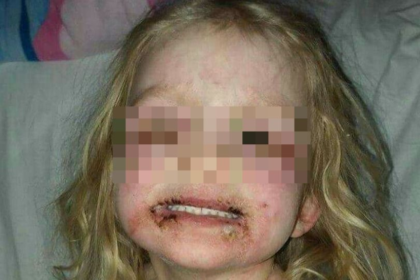 Dia yang berasal dari Georgetown, Illinois itu turut memberitahu bahawa anaknya tidak dapat makan selama beberapa hari kerana bibir kanak-kanak berkenaan melecit dan luka.
