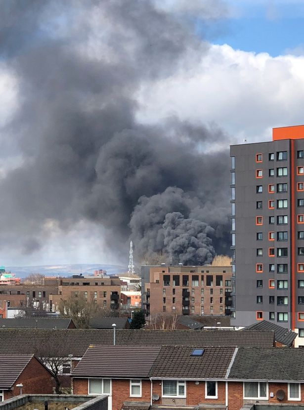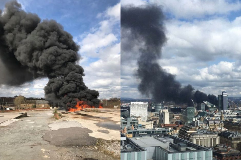 Api mula merebak berhampiran kawasan Ancoats di bandar itu dan kepulan tersebut boleh dilihat dari jarak beberapa kilometer.